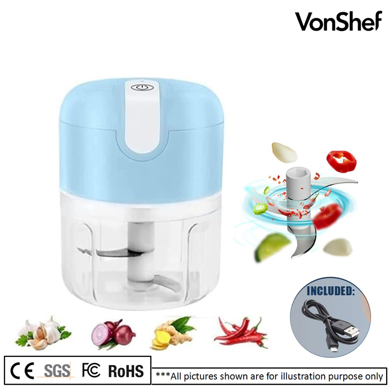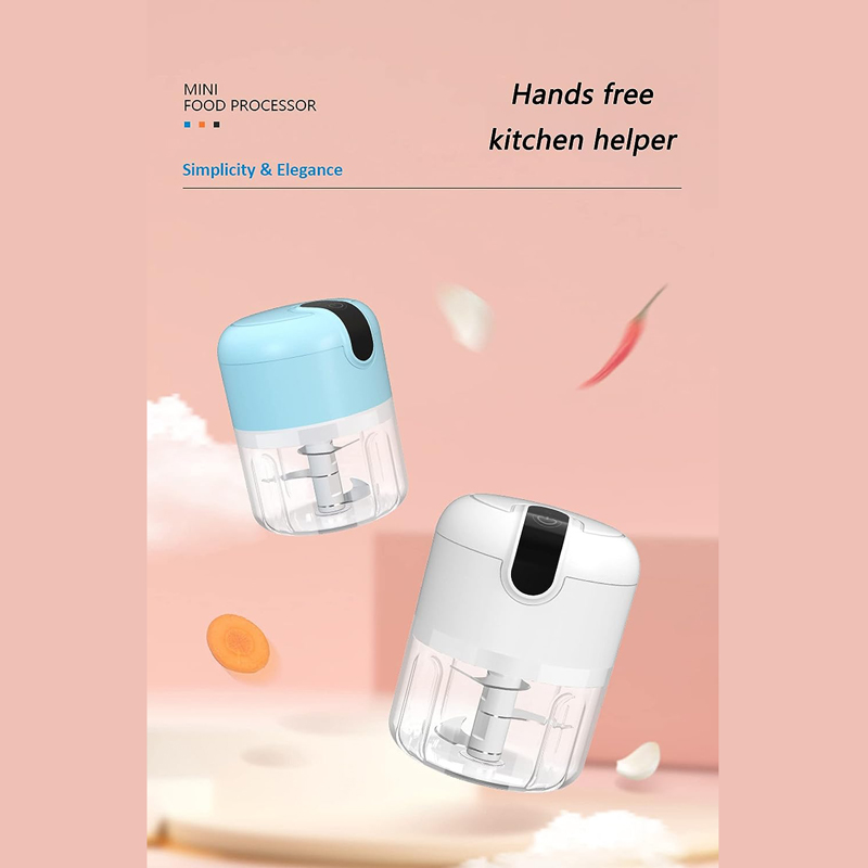 - Electric garlic chopper is equipped with sharp stainless steel blades and motor for better performance. The mini garlic chopper helps you do small and quick jobs like chopping garlic, peppers, ginger, carrots, vegetables, onions nuts and more