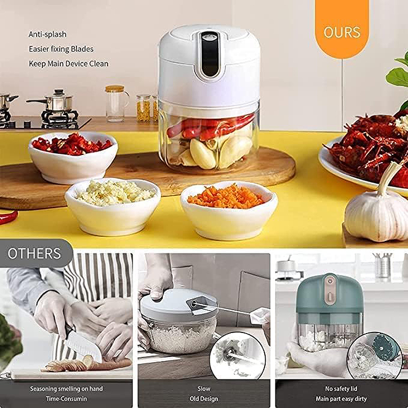 - Garlic chopper mini can be use as a salad chopper, onion chopper (no tears), garlic chopper, herb chopper or as a general-purpose electric food chopper. This mini garlic chopper is for chopping and blending daily meals ingredient, seasoning, spice, sauces, mash potatoes, pesto, guacamole, baby food, fruit juice.