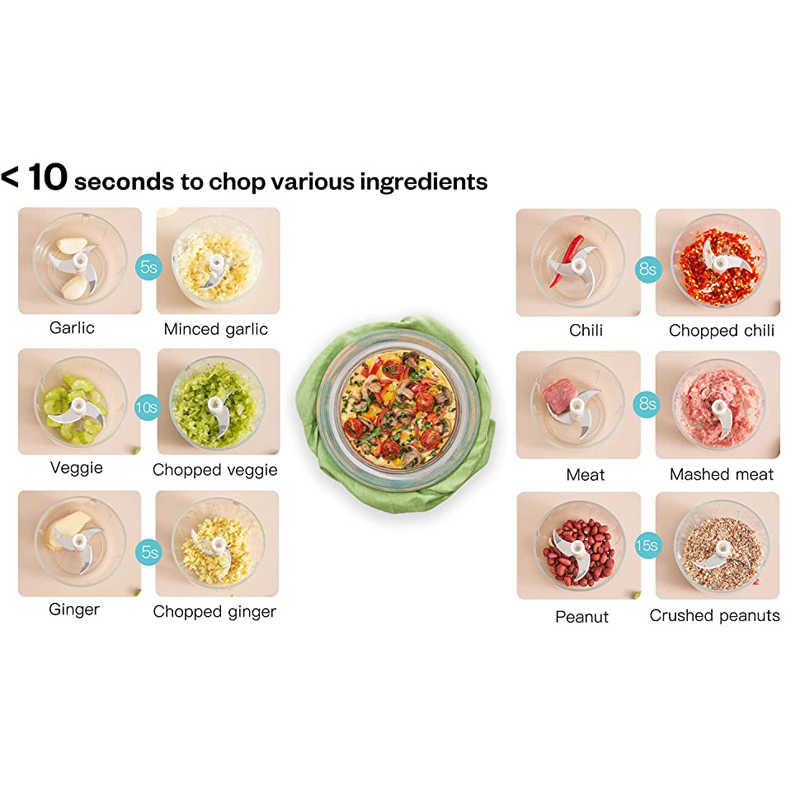 - The mini garlic chopper is simple to use. Just long-press the top button to start and release it to stop that operation allows you to control the degree of the food shred whatever you want. The electric mini food chopper is for your everyday cooking.